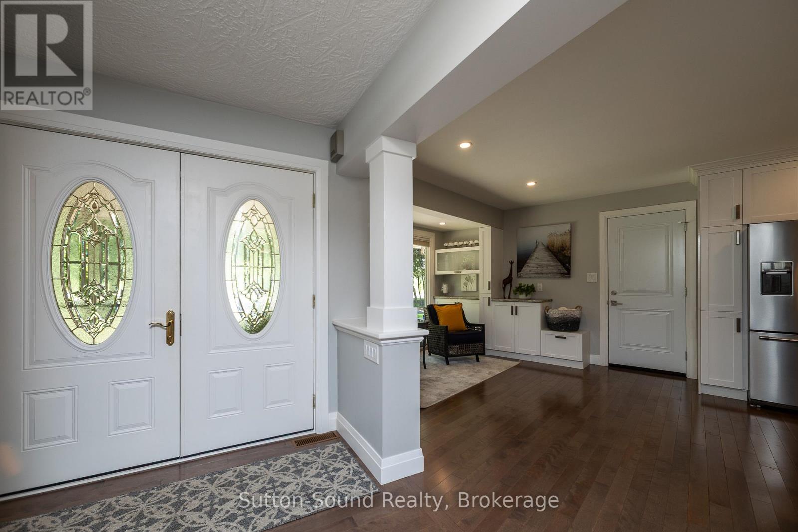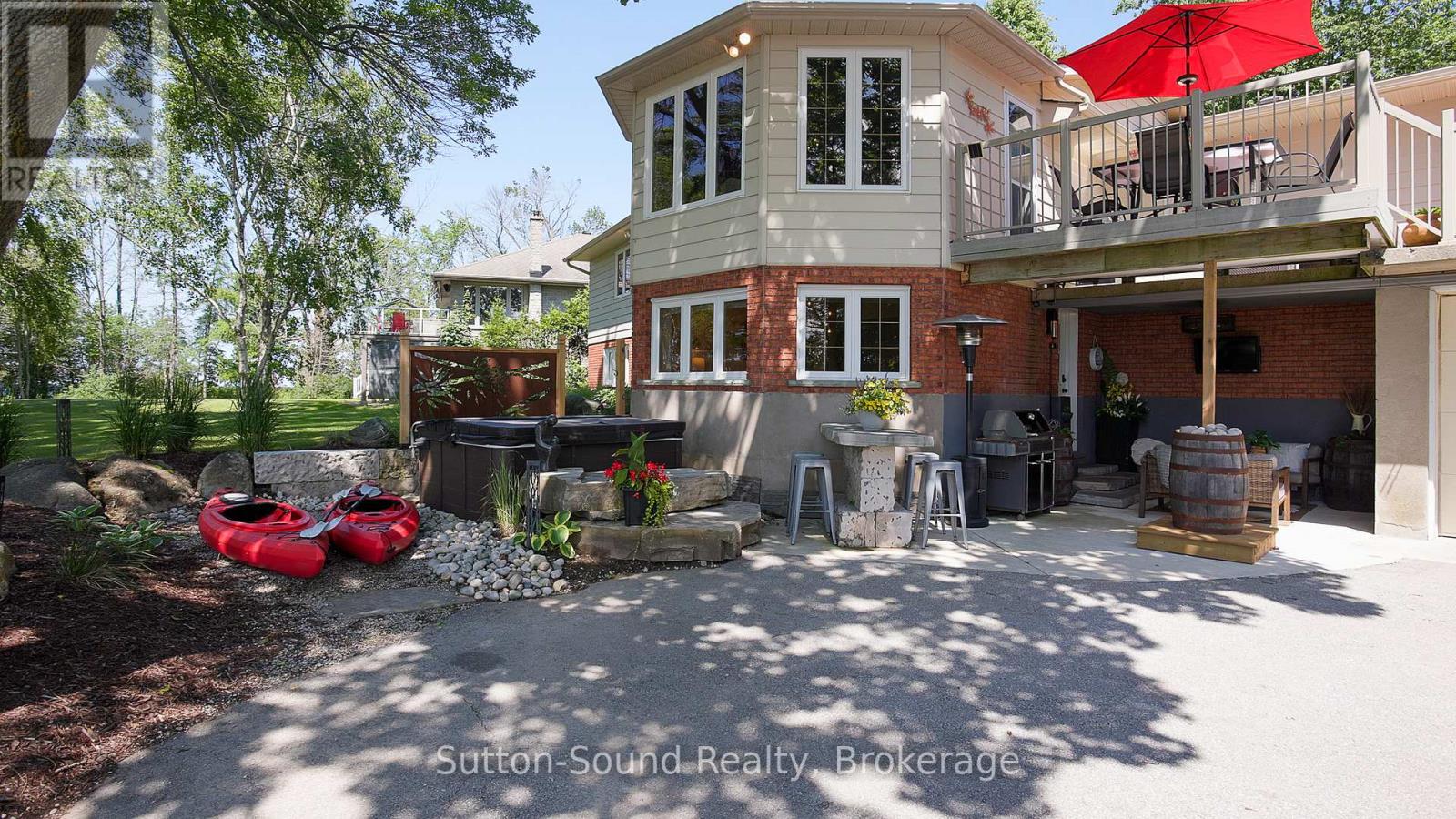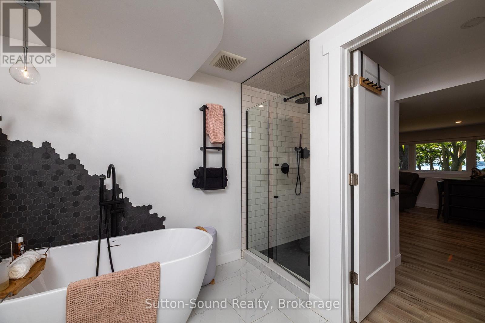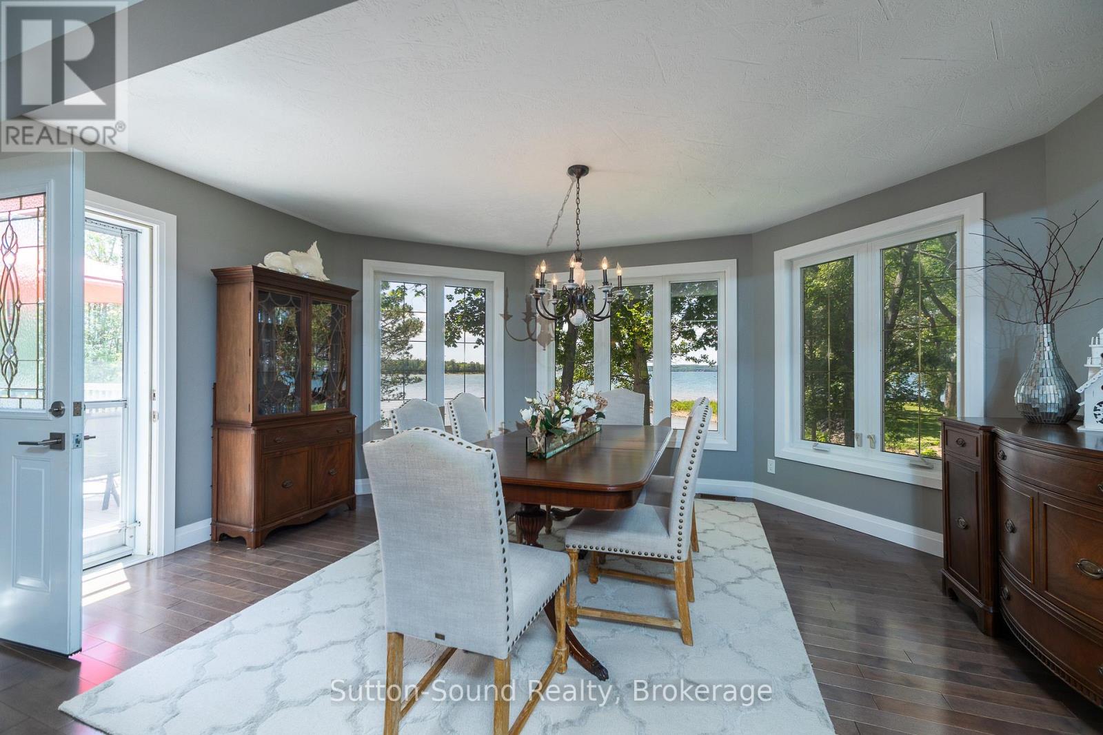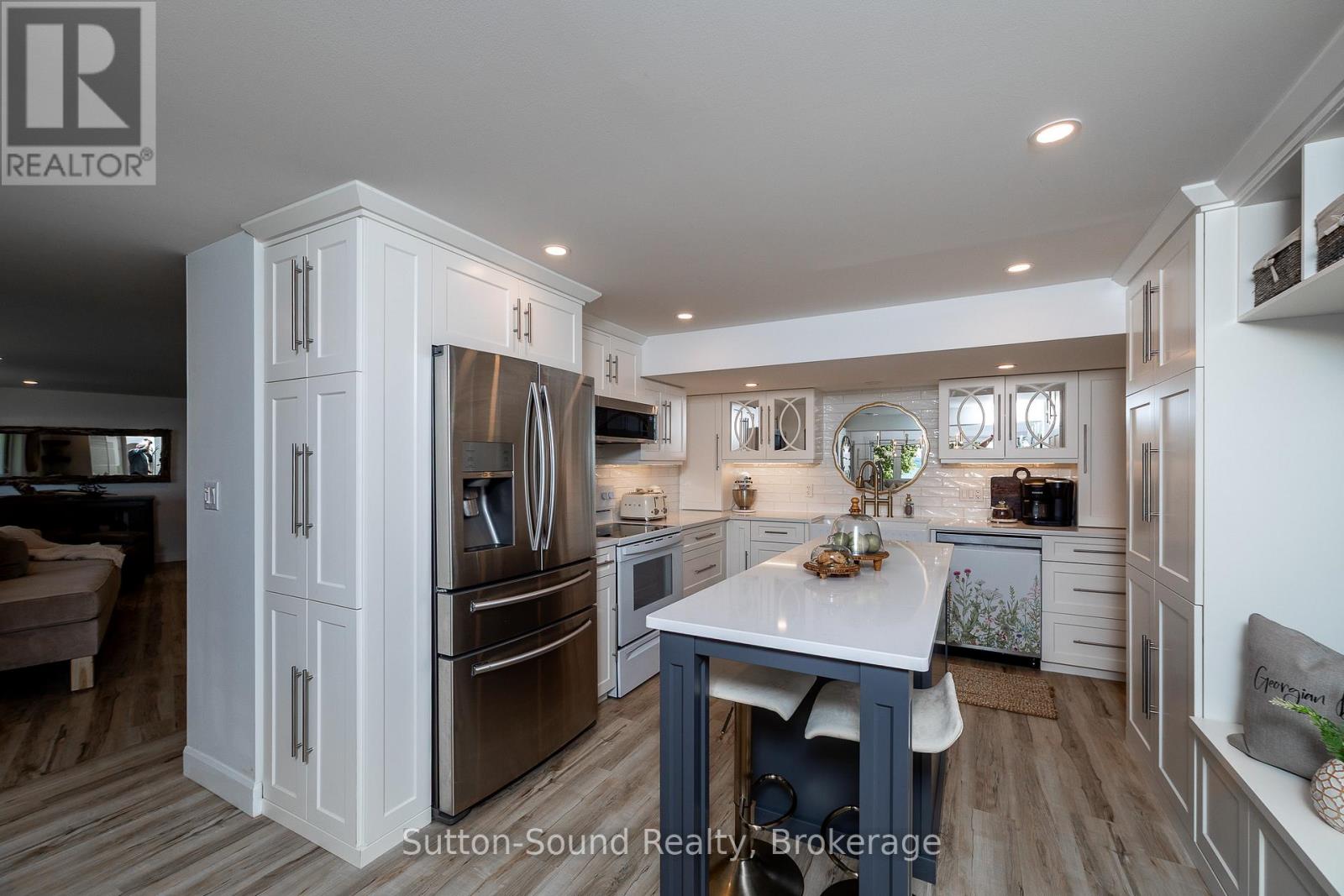 Welcome to 359288 Grey Rd 15, a beautifully updated Georgian Bay waterfront retreat just minutes from Owen Sound. This impeccably maintained 4-bedroom, 3 bathroom bungalow with attached garage offers over 400 ft of pristine shoreline, and is nestled on a sprawling, beautifully landscaped 0.65 acre lot with panoramic views and unforgettable sunsets. Designed with both comfort and sophistication in mind, the main level features a spacious, open concept eat-in kitchen complete with a granite island- ideal for entertaining- flowing seamlessly into a stunning dining room addition with expansive windows that frame the captivating waterfront. The main floor also hosts a powder room, living room with gas fireplace, two generously sized bedrooms and a spa-inspired bathroom showcasing exquisite tilework and glass walk-in shower. Energy-efficient ground source heating ensures year-round comfort. The fully finished lower level, with its own private entrance, offers exceptional versatility- perfect for extended family or guests- featuring a second dine-in kitchen with quartz countertops, a welcoming living room with electric fireplace, two additional bedrooms, and a beautifully appointed 4-pc bath with soaking tub and tiled shower. Step outside and the multiple entertaining areas, a spacious dock, and thoughtfully designed spaces invite you to relax and enjoy the very best of refined waterfront living. (id:4069)
