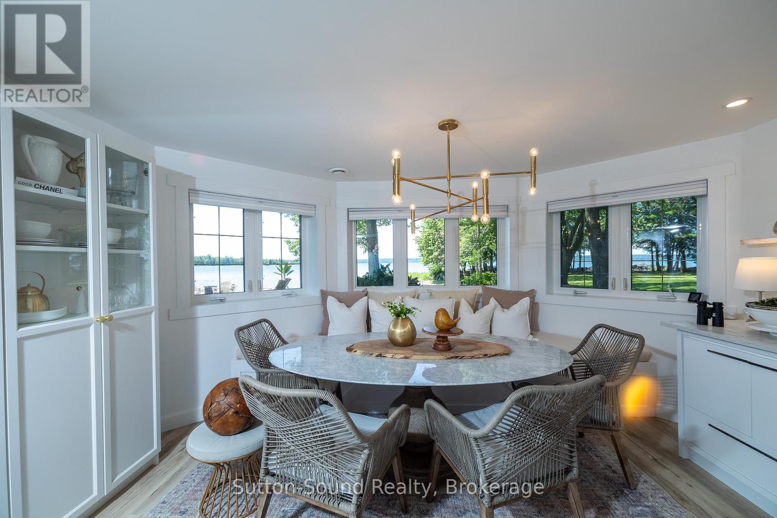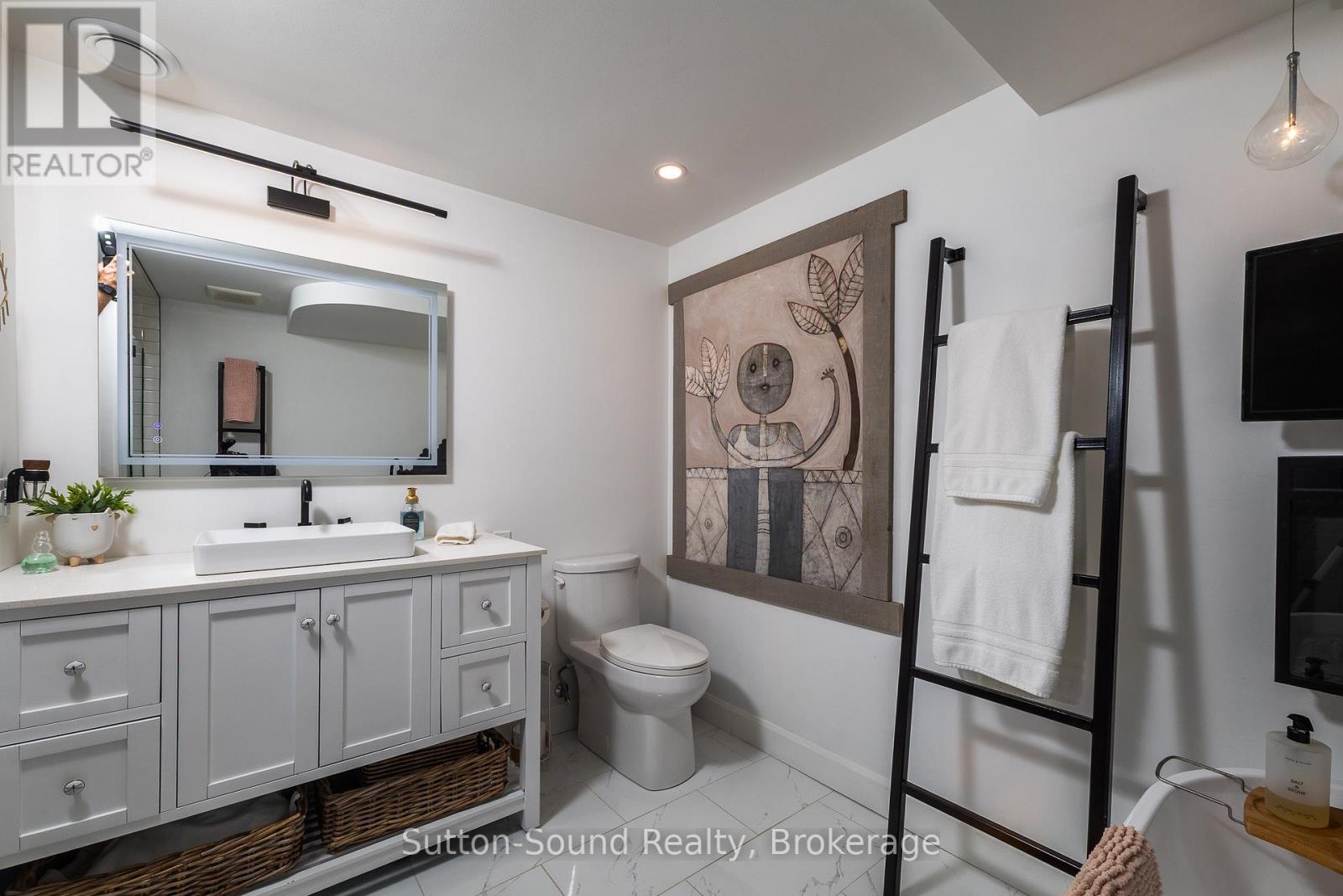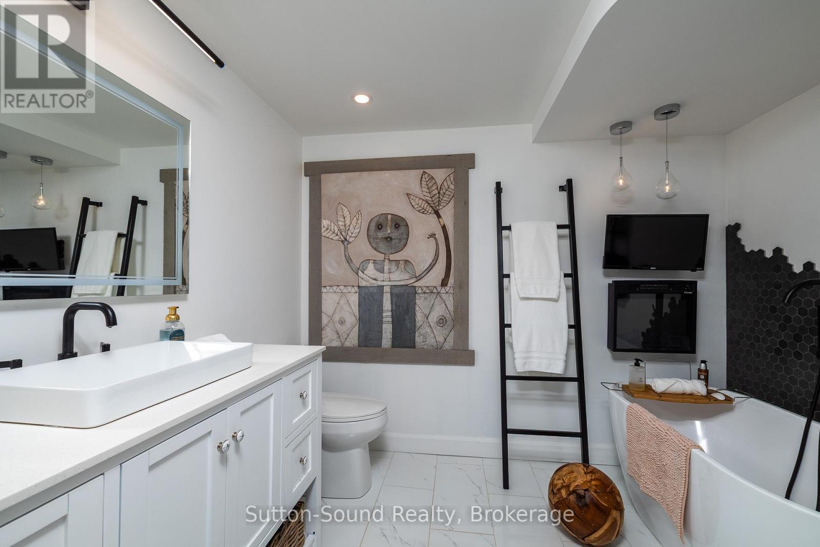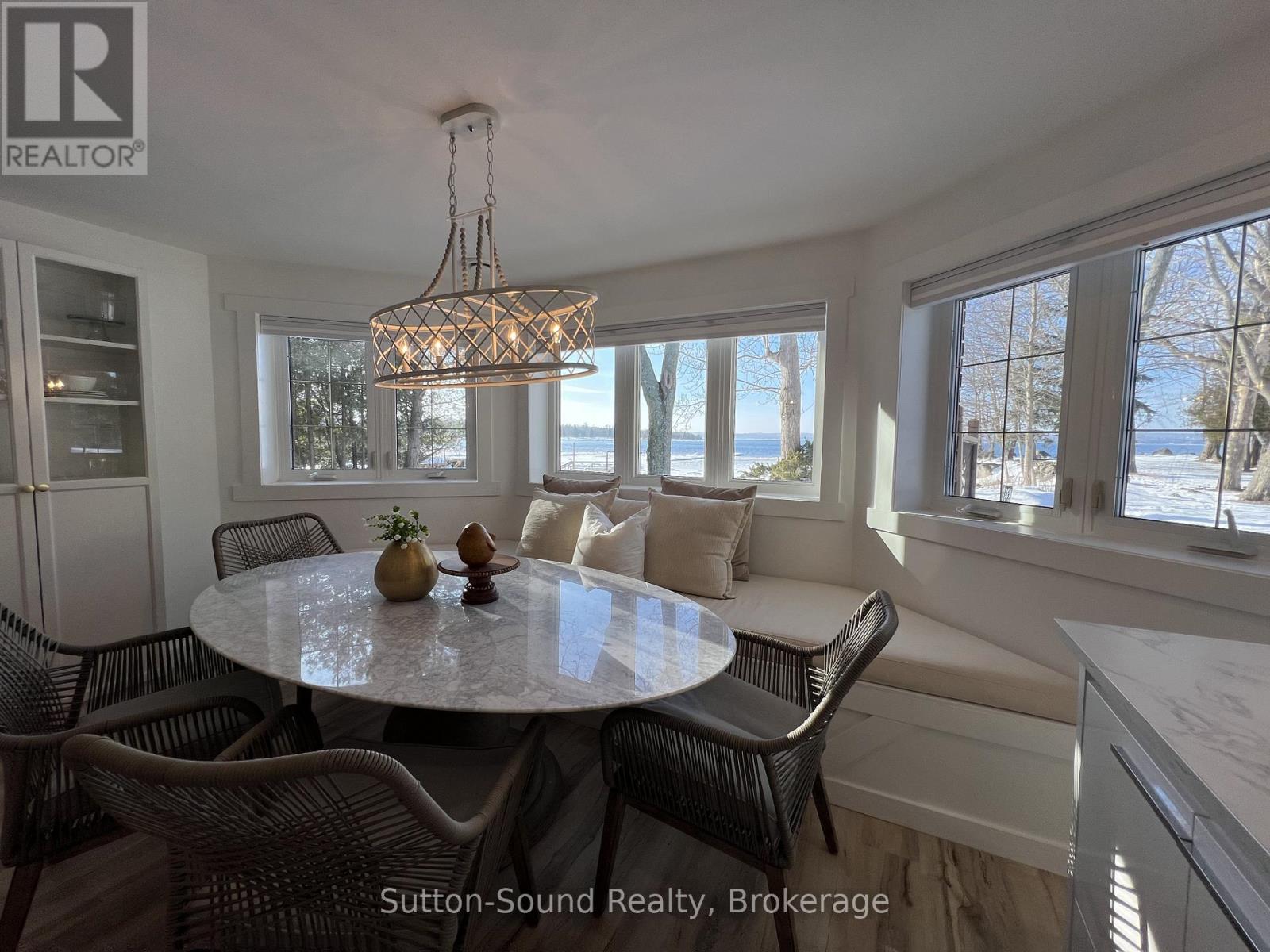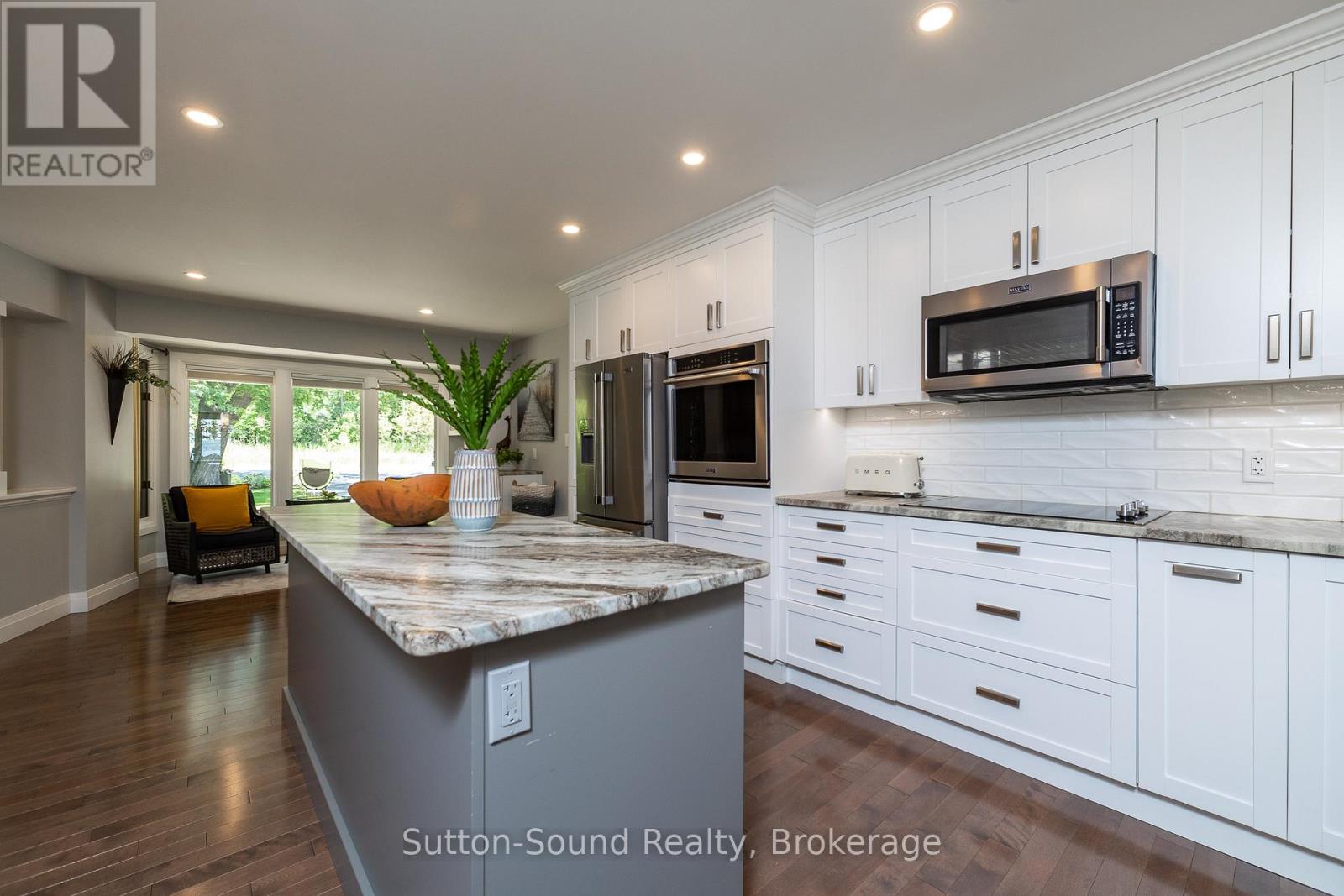 Welcome to 359288 Grey Rd 15, a beautifully updated Georgian Bay waterfront retreat just minutes from Owen Sound. This impeccably maintained 4-bedroom, 3 bathroom bungalow with attached garage offers over 400 ft of pristine shoreline, and is nestled on a sprawling, beautifully landscaped 0.65 acre lot with panoramic views and unforgettable sunsets. Designed with both comfort and sophistication in mind, the main level features a spacious, open concept eat-in kitchen complete with a granite island- ideal for entertaining- flowing seamlessly into a stunning dining room addition with expansive windows that frame the captivating waterfront. The main floor also hosts a powder room, living room with gas fireplace, two generously sized bedrooms and a spa-inspired bathroom showcasing exquisite tilework and glass walk-in shower. Energy-efficient ground source heating ensures year-round comfort. The fully finished lower level, with its own private entrance, offers exceptional versatility- perfect for extended family or guests- featuring a second dine-in kitchen with quartz countertops, a welcoming living room with electric fireplace, two additional bedrooms, and a beautifully appointed 4-pc bath with soaking tub and tiled shower. Step outside and the multiple entertaining areas, a spacious dock, and thoughtfully designed spaces invite you to relax and enjoy the very best of refined waterfront living. (id:4069)